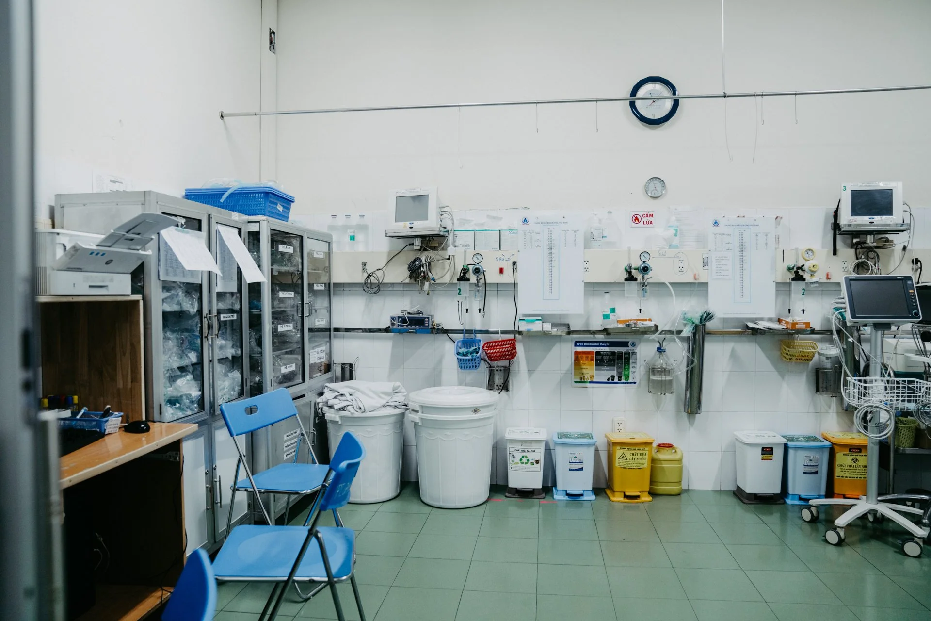Konkret werden die vietnamesischen Kollegen bei der Durchführung von komplexen Fehlbildungen des Dünn- und Dickdarms unterstützt. Im OP wird ihnen vor allem bei der Anwendung von minimalinvasiven bzw. laparoskopischen Techniken geholfen. Wir diskutierten vor und nach den Operationen viel mit den vietnamesischen Kollegen z.B. während gemeinsamer Visiten auf der Neugeborenen-Intensivstation, um ihnen in dieser Zeit ein Maximum an Knowhow zu vermitteln. Klar ist: Die Umstände sind hinsichtlich Technologie und Infrastruktur mit unserem westlichen Stand der Dinge nicht zu vergleichen. Die Familien der behandelten Kinder hängen z.B. ihre Hängematten im Krankenzimmer auf und campieren dort, bis der kleine Patient wieder entlassen wird. Auch bei der medizinischen Versorgung ist Improvisation die Regel. Einfache Schreibtischlampen werden als Wärmelampen für Säuglinge umfunktioniert, und im Operationssaal herrscht hinsichtlich der Ausrüstung ein deutlich niedrigeres Niveau als beispielsweise in Deutschland. Als internationale Kinderhilfsorganisation wissen wir dennoch: Arbeiten kann man auch limitierten Ressourcen und im Vergleich zu anderen Hilfsprojekten der Stiftung Kinderchirurgie (z.B. in Äthiopien oder Tanzania) sind die Techniken in HCMC weit fortgeschritten.